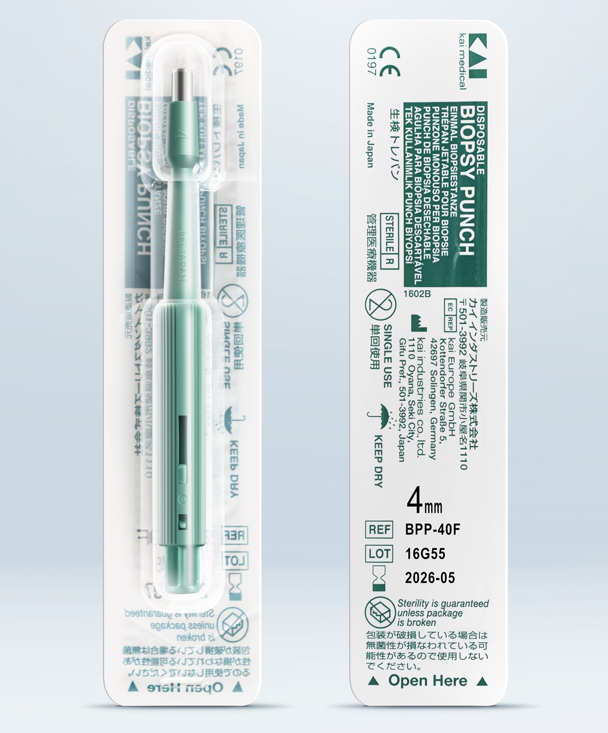 Biopsy punches in small sizes require time and effort to use, as specimens tend to become stuck in the punch. Specimens can also easily become damaged if removed with force. Following doctors’ feedback, KAI MEDICAL developed a unique biopsy punch with a plunger system. This allows smooth ejection of tissue lodged in the punch. Colour coding makes sizes easy to identify. Biopsy punches with plunger are available in the following smaller sizes: 1.0/1.5/2.0/3.0/4.0 mm.